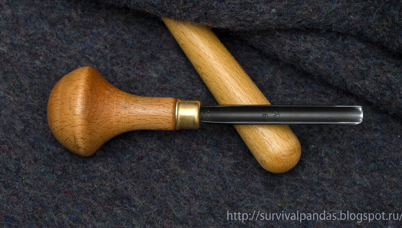 Дальше у нас идет прямая полукруглая стамеска с грибовидной ручкой 6-го номера. Благодаря ручке резать такой стамеской удобней всего
